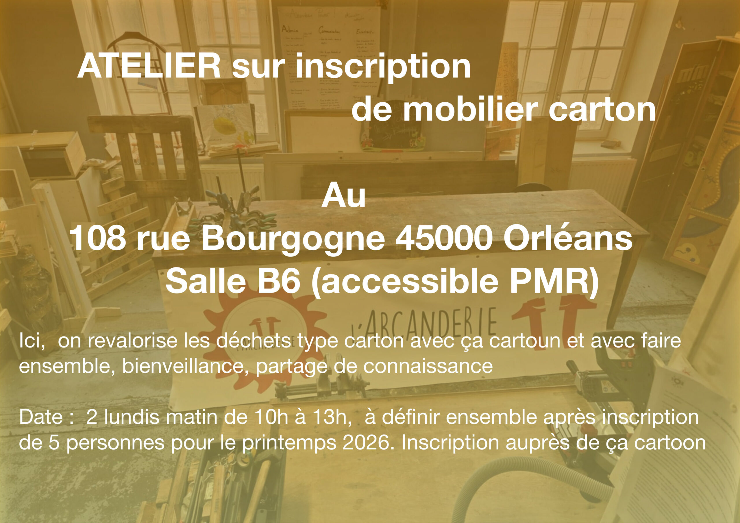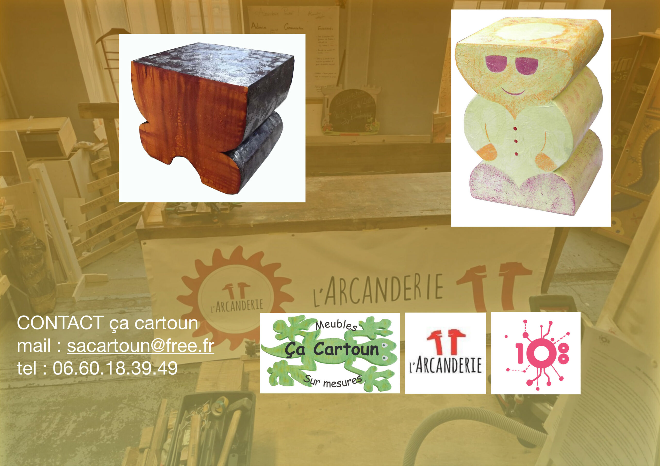 C’est grâce à l’Arcanderie, Atelier collaboratif de bricolage basée au 108, que je peux vous proposer cette petite formule de 2 x 3h des lundis matin du printemps à venir, à choisir ensemble. Voyez notre flyer ci dessous.